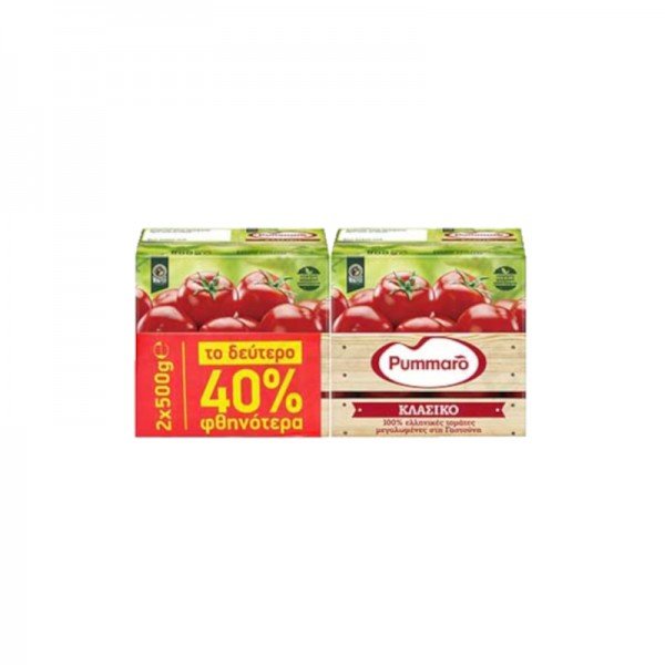Pummaro Classic Concentrated Tomato Juice 2x500gr -40% the 2nd Product / Pummaro Κλασικό Συμπυκνωμένος Χυμός Τομάτας 2x500gr -40% το 2ο Προϊόν