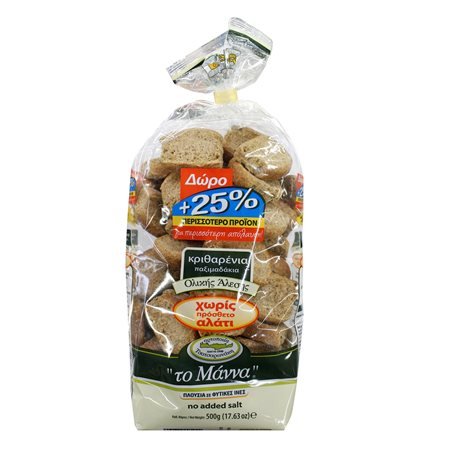 Manna Barley Rusks +25% Gift Product 500g / Το Μάννα Παξιμάδια Κριθαρένια +25% Προϊόν Δώρο 500g